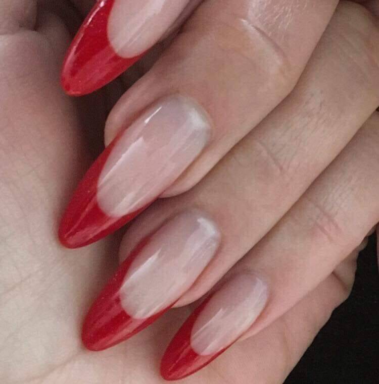 French manicure is een roze nagelbed en een witte top/vrije rand. De topvrije /rand kan in alle kleuren gemaakt worden.
